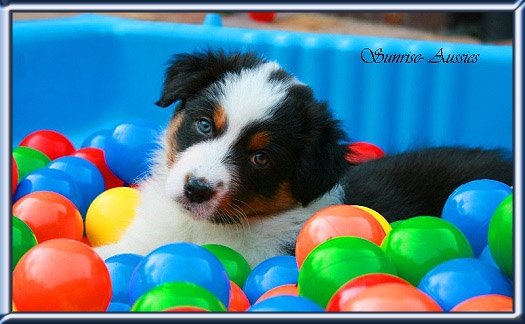 Ab der 8. Woche beginnt die Sozialisierungsphase in der das gesamte "Aussie-Rudel" bei der Erziehung mithilft, damit die "kleinen Racker" lernen was für das spätere Leben wichtig ist. Wir geben nur Welpen ab die optimal geprägt und im Umgang mit Artgenossen, Menschen und anderen Tieren bestens sozialisiert sind.